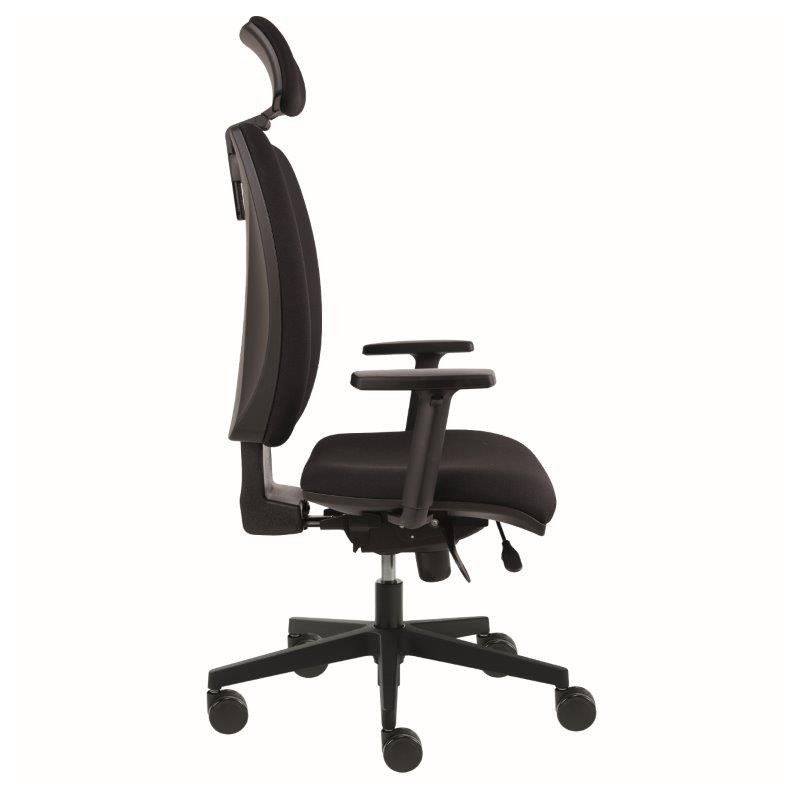 Darba krēsls ar sinhrono mehānismu ar 5 fiksēšanas pozīcijām, ar vai bez regulējama galvas balsta, sēdeklis un atzveltne no PU putām, regulējams sēdekļa dziļums, regulējams atzveltnes augstums, (7 pozīcijas) fiksēti vai regulējami roku balsti, plastmasas vai pulētaalumīnija kāja ar mīkstiem ritentiņiem.