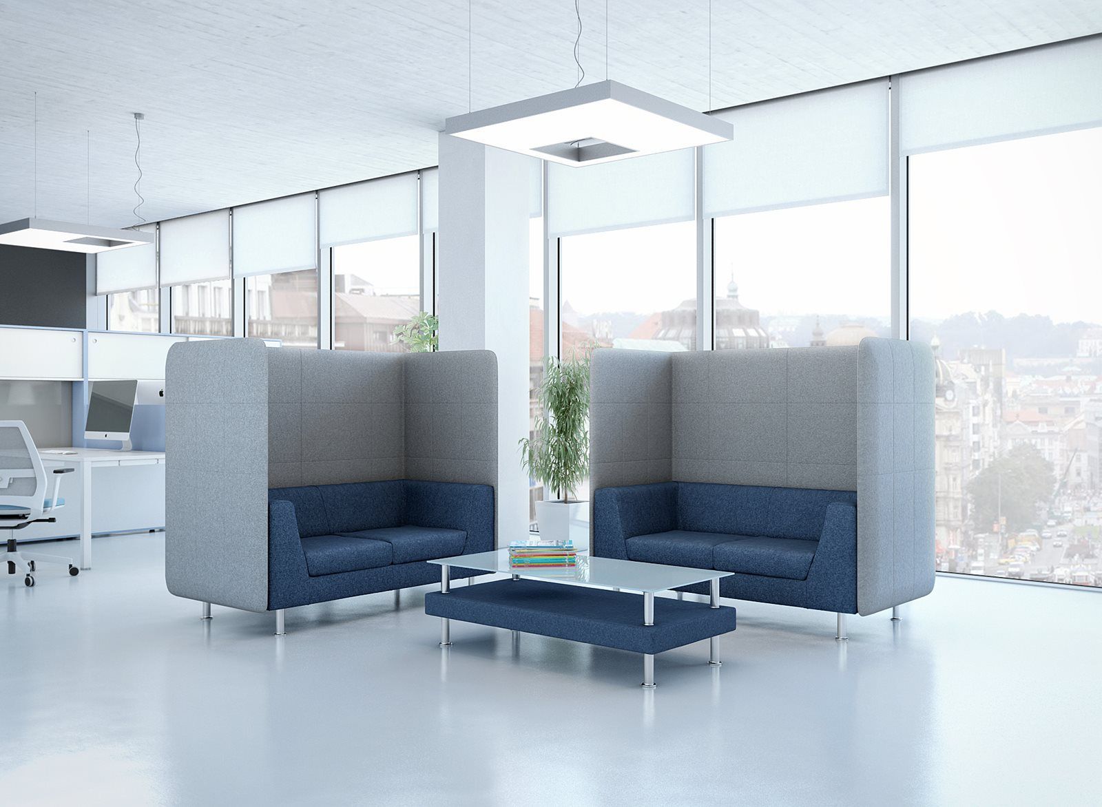 Biroja dīvānu komplekts apmeklētājiem. Karkass no masīvkoka, PU putu polsterējums, hromētas metāla kājas.